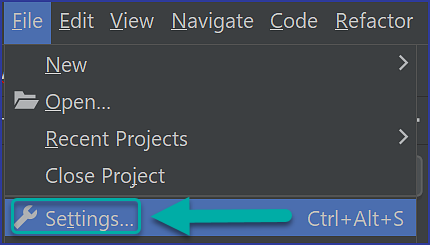 Navigate to File → Settings (