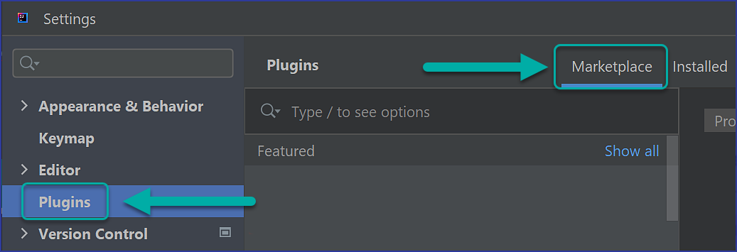 Navigate to Plugins → Marketplace: