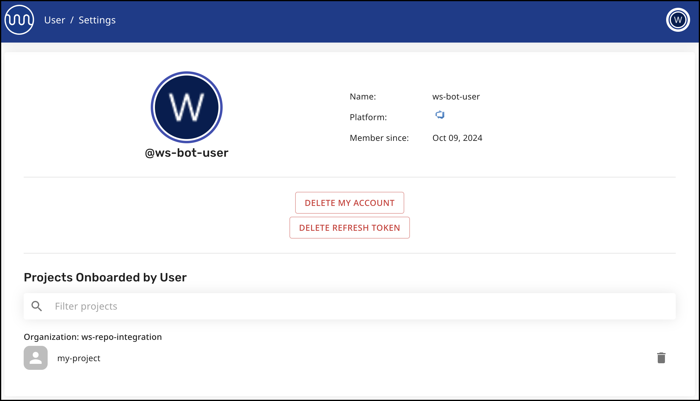 In case you are the user who onboarded projects with the Mend Developer Platform integration, you will find in your Profile Settings page the list of those projects.