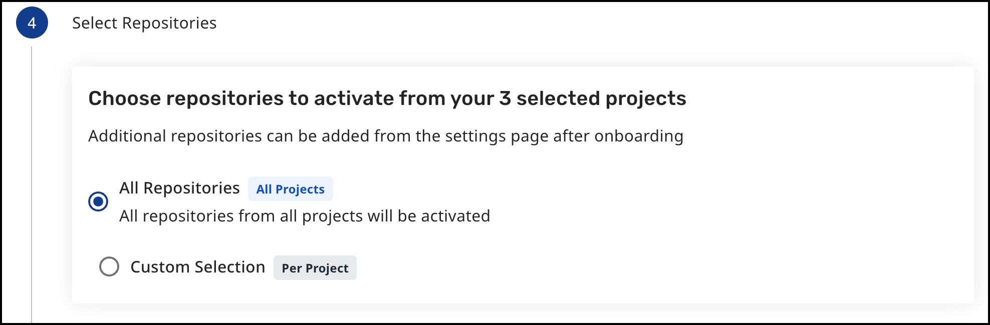 Selecting repositories at this step defines which will have the available engines enabled and activated.