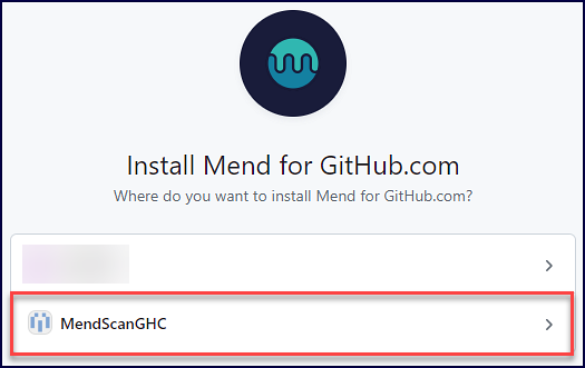 If you have multiple organizations, select the organization you wish to install Mend for GitHub.com: