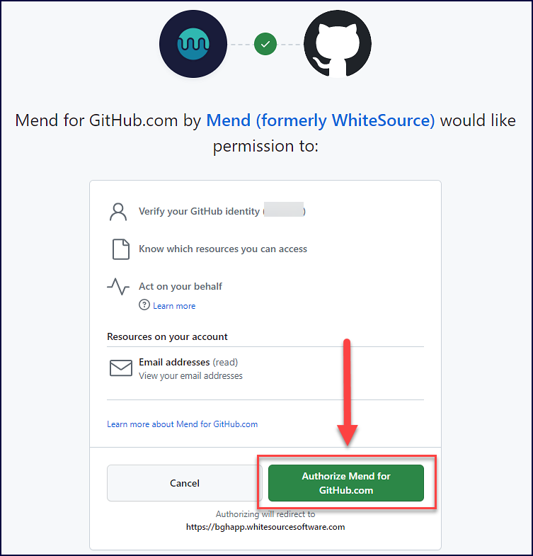 Read over the requested permissions and select Authorize Mend for GitHub.com:
