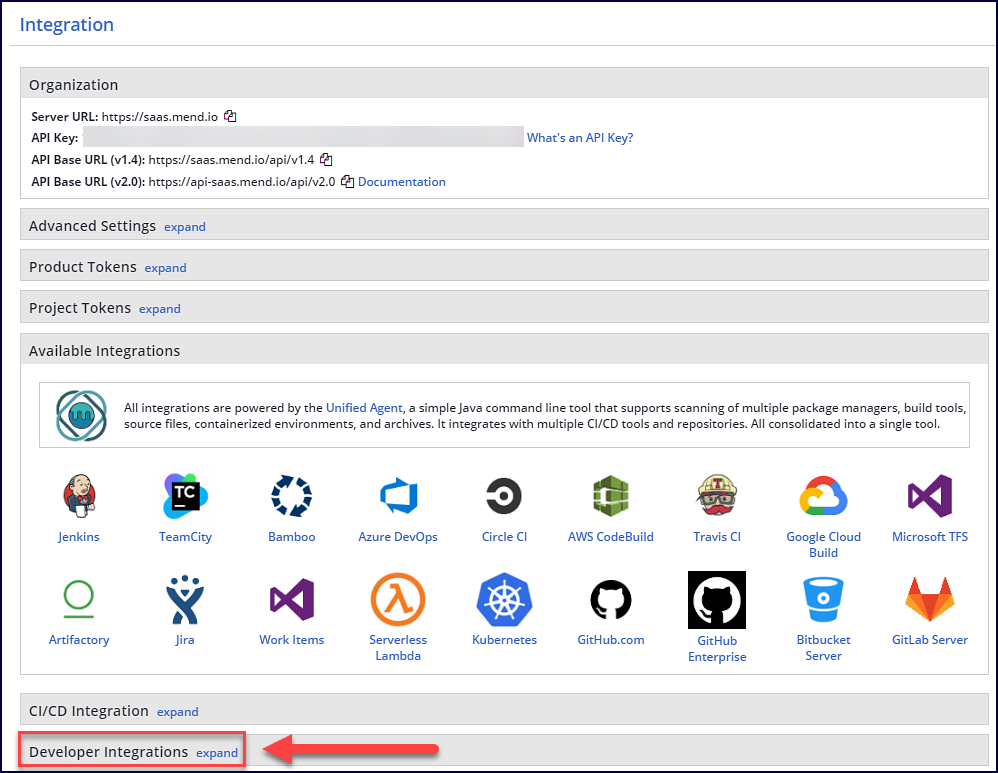 Note: When setting up repository integrations, you can only connect one source code management (SCM) system to a single Mend organization. For example, if you integrate a GitHub organization, you cannot link additional SCM systems like GitLab groups or Bitbucket teams to the same Mend organization.
