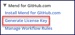 Note: After you generate the Mend license key, a service user named ws_4_ghc_service_user is created in your Mend organization in the admins group. Do not remove this service user or its permissions as it is required for the Mend GitHub.com integration to function correctly: