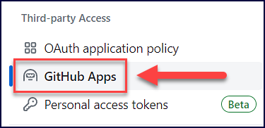 In the left-hand table of contents, find the Third-party Access section and click on GitHub Apps: