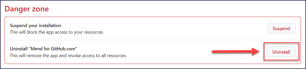 Uninstall Mend for GitHub.com from your GitHub organization