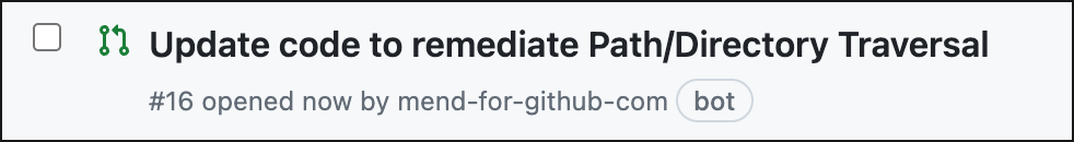 Once a Mend Code Security Check (SAST) has been completed in the repository, you can review the suggested remediations and create a Pull Request to implement the code fix.