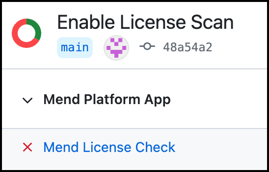 The following commit status indicators are available as feedback on the head commits for the Mend License Check: