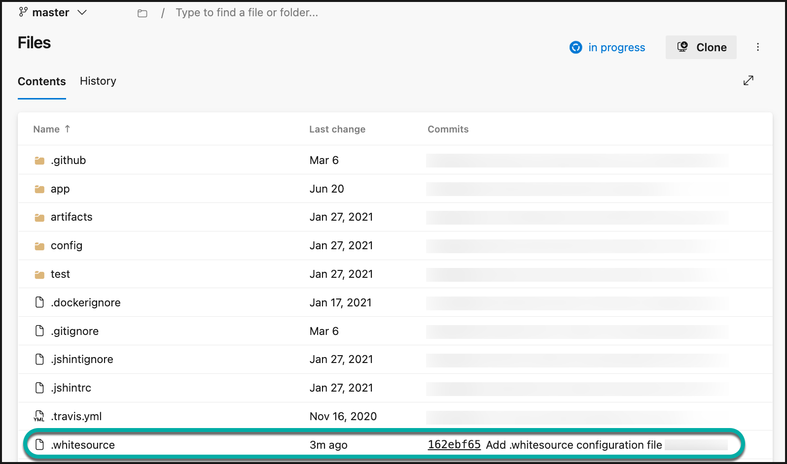 Note: A .whitesource file placed outside the default branch will be ignored.