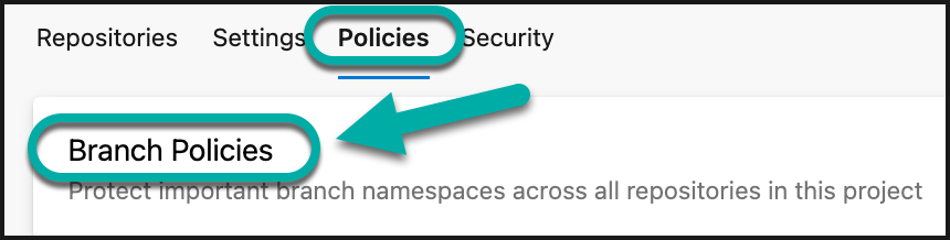 In the Repositories page, navigate to the Policies tab → Branch Policies section: