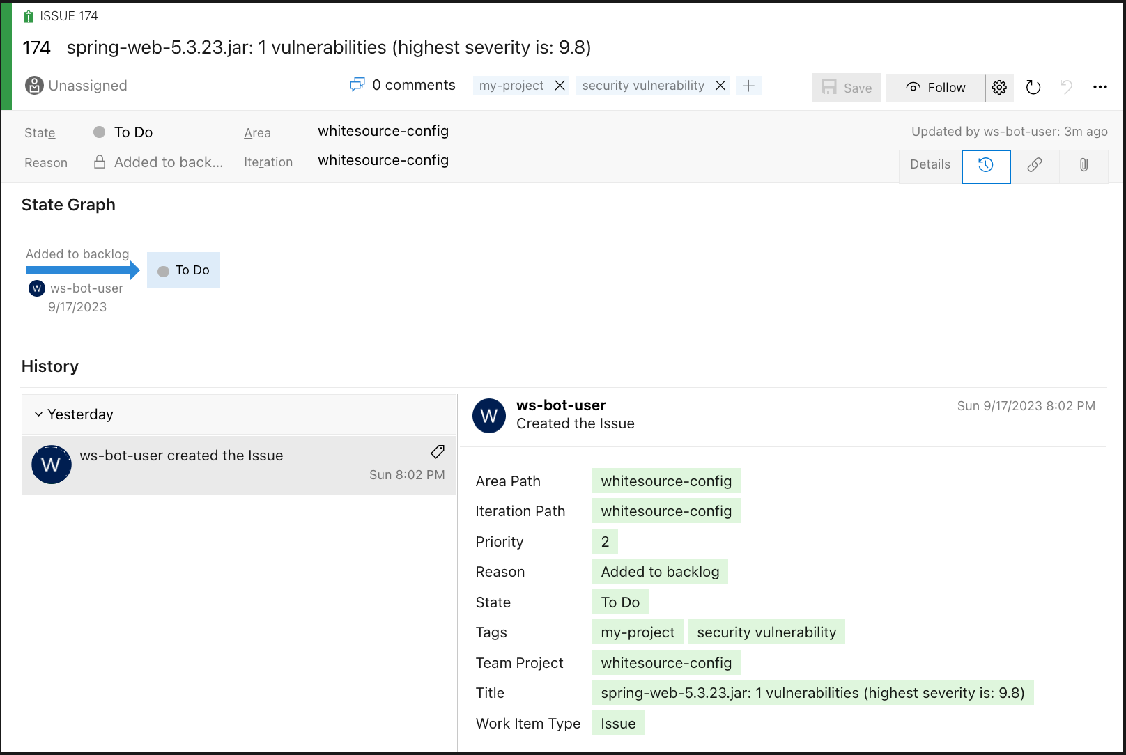 Work Items created by the bot-user:
