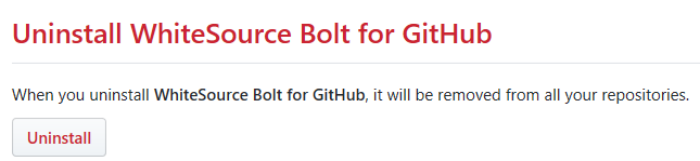 The Mend Bolt for GitHub page opens. In Uninstall Mend Bolt for GitHub, click Uninstall.