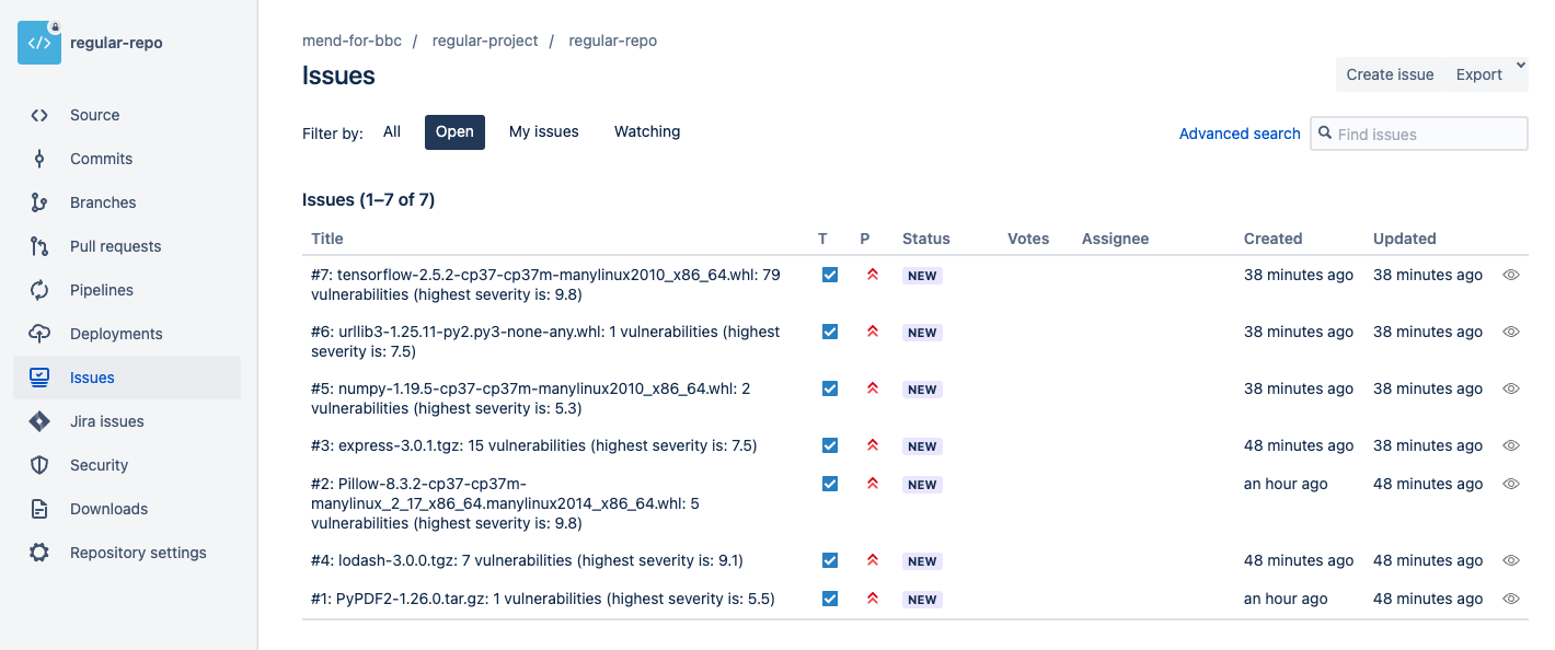 In the Mend UI, Mend projects will have the same name as the corresponding Bitbucket Cloud repository, with a "BBC_" prefix.
