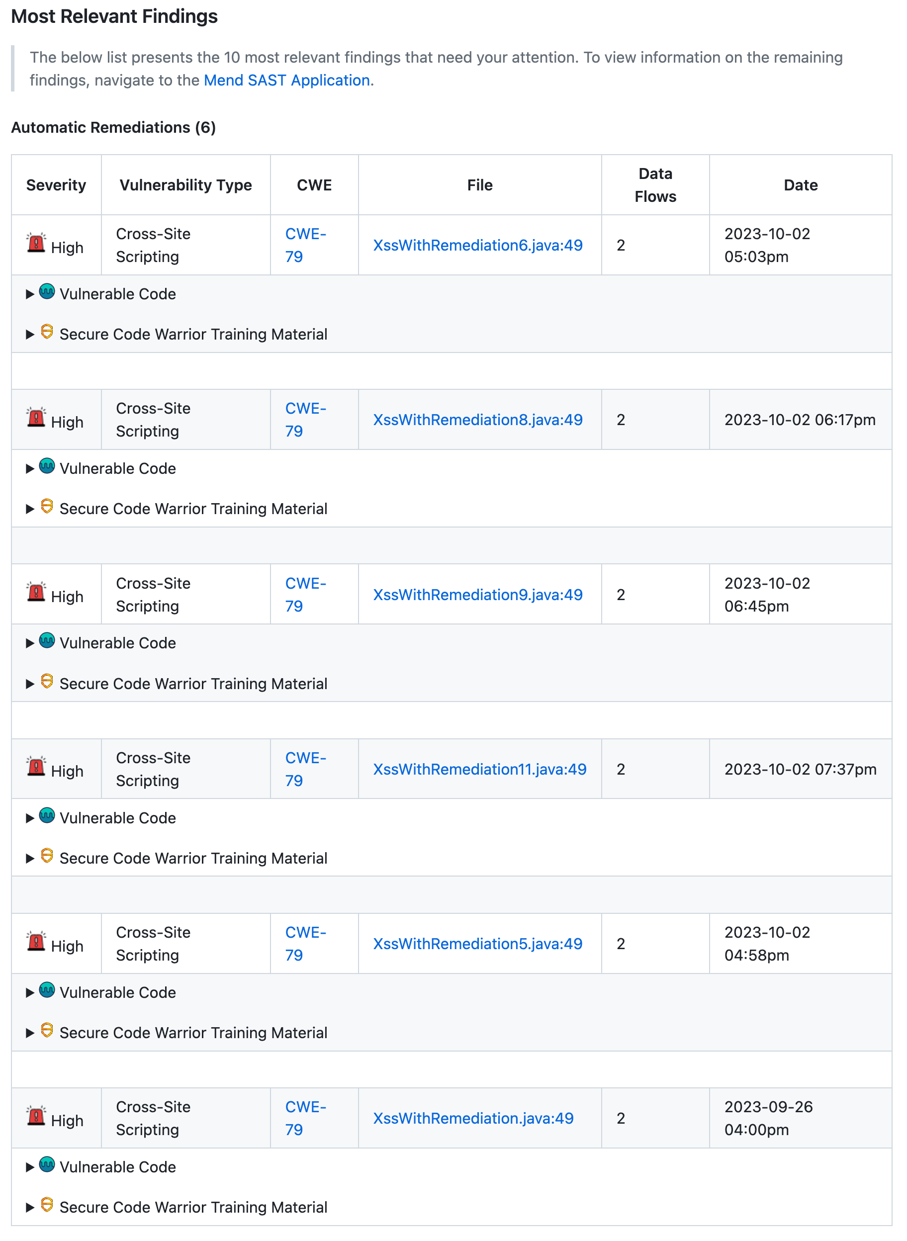 Secure Code Warrior Training Material: Expand to see context-based links to Secure Code Warrior training material.