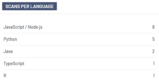 The scans per language card displays the scan count per detected or specified language(s) across all application scans in your organization: