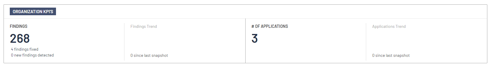 The KPI card displays the most recent number of Applications scanned, the total number of findings, and their trends over time: