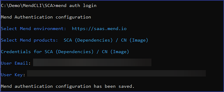 Command Line: | Input your user email that has access to the Mend organization.