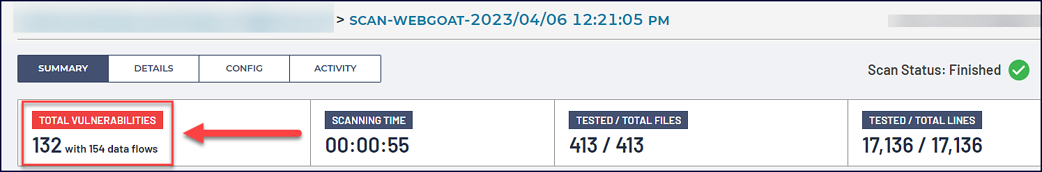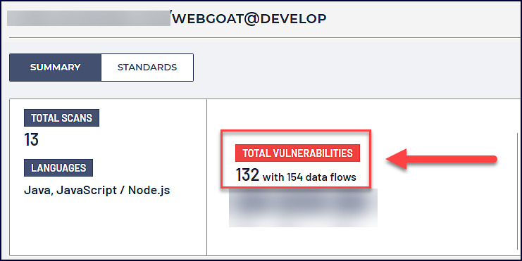 A “Data flows” count is now visible in the “Total Vulnerabilities” box. This corresponds to the previously reported total number of findings, as before, each finding represented a single data flow: