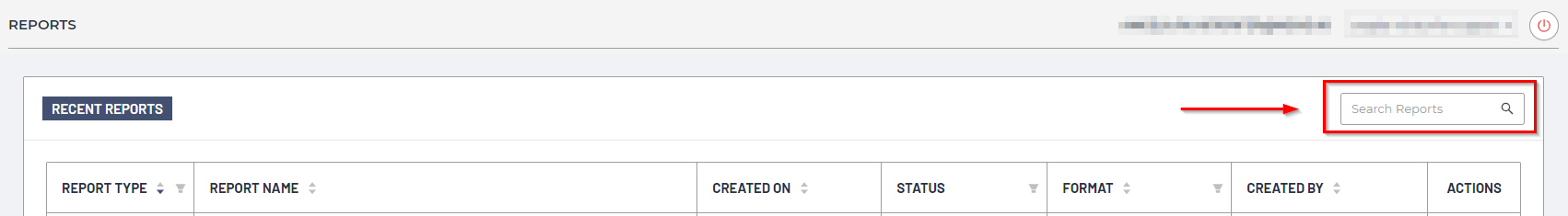 Searching through reports is done by entering the search query into the Search Reports field in the upper right corner of the Reports dashboard: