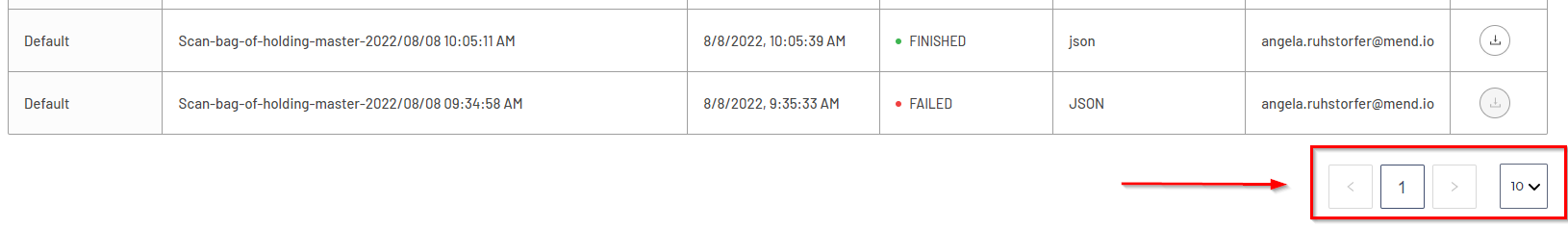 The default display will show 10 reports per page, which can be adjusted by selecting the drop-down menu in the lower right corner of the Reports dashboard (up to 50 reports per page):