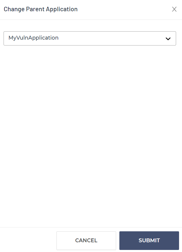 Here, you can change the parent application of this scan to another preexisting application: