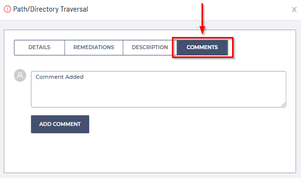In the vulnerability Comments tab, you can add comments to the vulnerability: