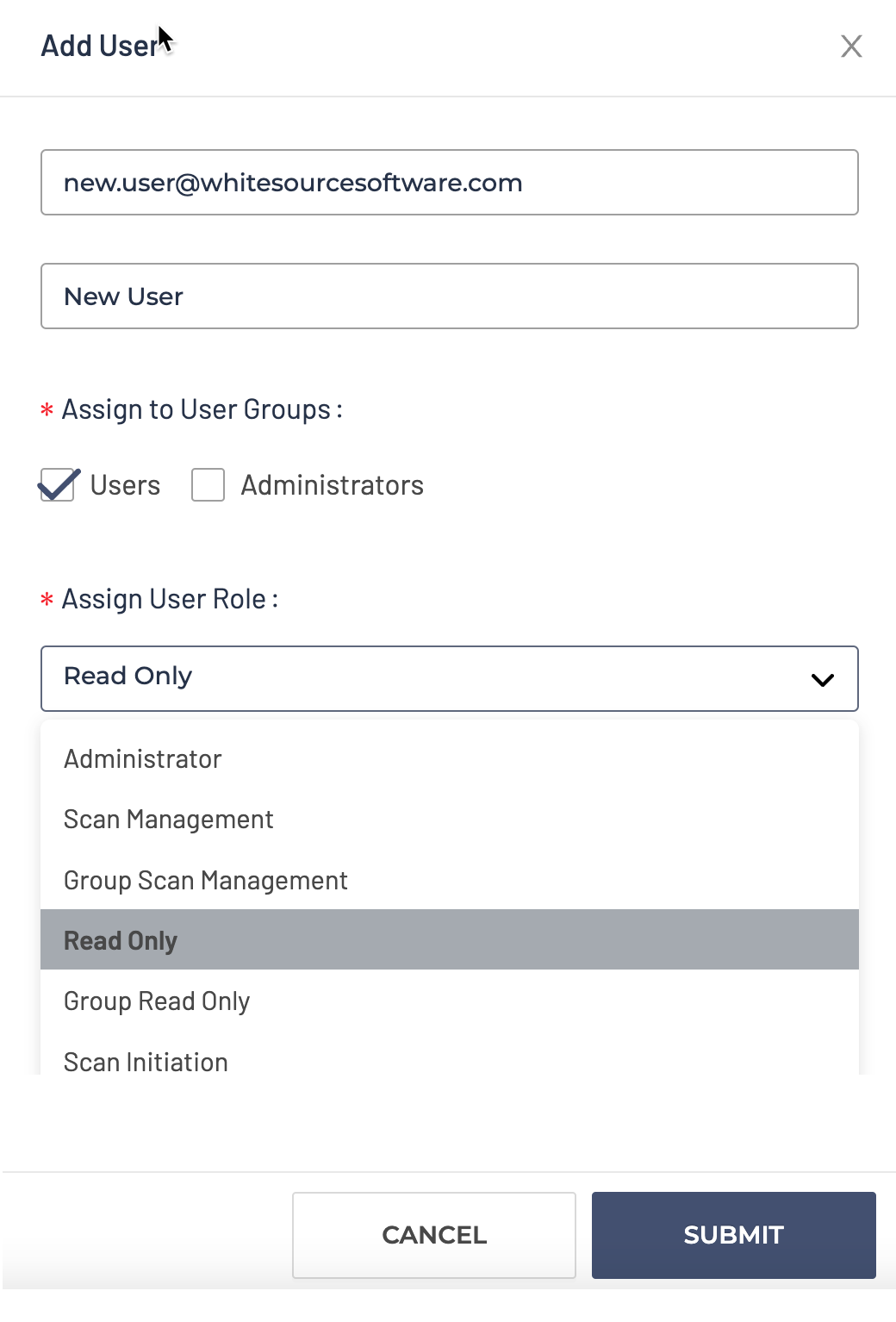 Read Only: Role that allows the review of all scan results and report generation but disallows any actions such as starting scans, deletions, suppressions, risk changes, or integration configurations.