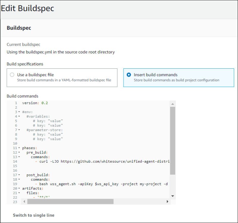 Determine the name of the Mend project.The buildspec.yml file should have the below structure: