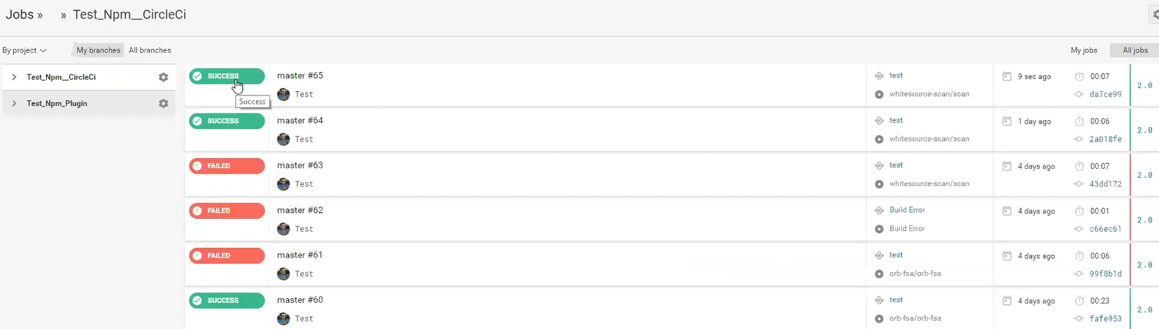 In order to view the status, go to the CircleCI GUI and click jobs. Click the relevant job and verify that a success message is displayed.