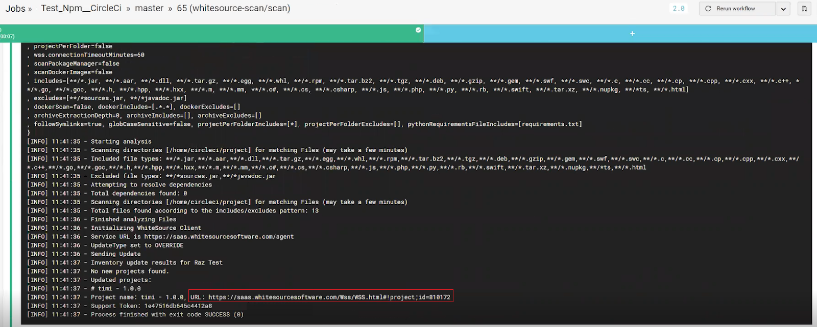 You have the option to view the logs, and then navigate to the Mend GUI. The URL for the scan result link is indicated in the logs.