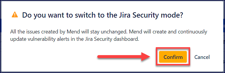 A pop-up window will appear to confirm the switch to the Jira Security mode. Click on the Confirm button to make the change: