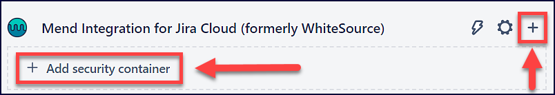 Within the View all tools section, click on either the + icon or the + Add security container option for the Mend Integration for Jira Cloud plugin: