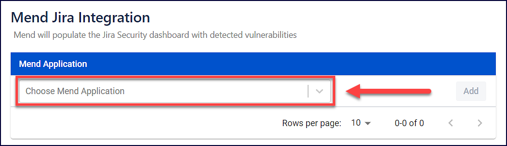 Within the Mend Jira Integration mapping page, select the Mend product from the Choose Mend Application dropdown: