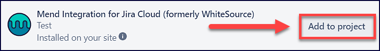 Search for the Mend Integration for Jira Cloud plugin and click on Add to project: