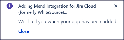 Congratulations! You’ve successfully installed the Mend Jira Cloud plugin. Read on to the Configure the Jira Security Dashboard section of this article to continue.
