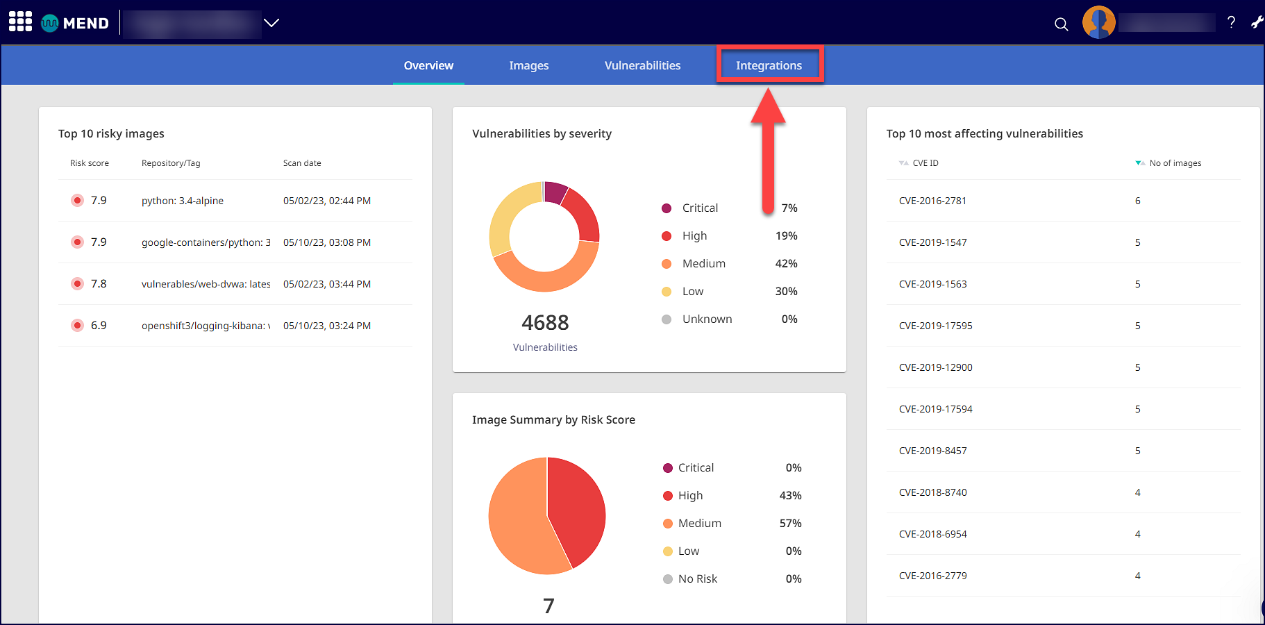 Within the Mend Application, navigate to the Cloud Native UI: