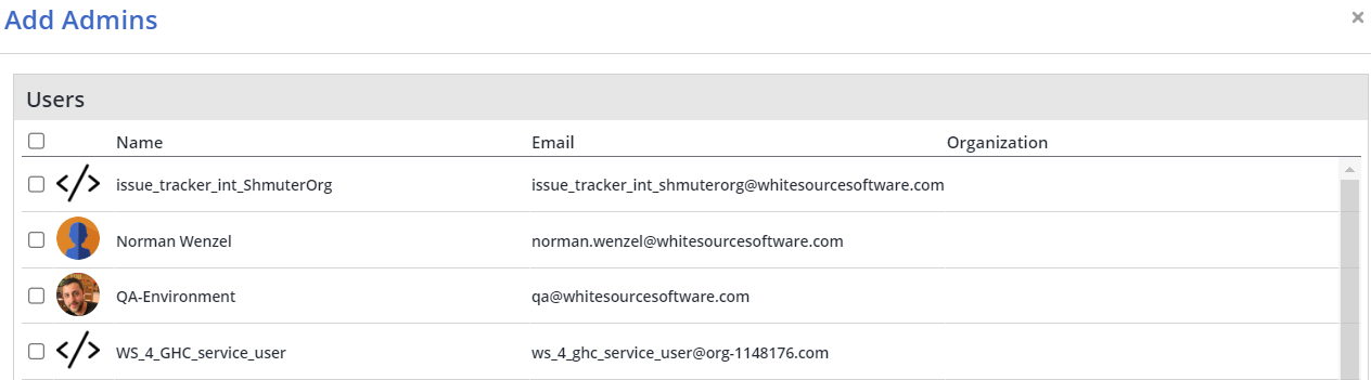 Click the Add Admins button.