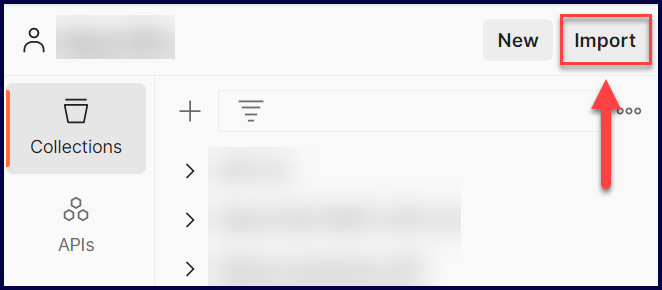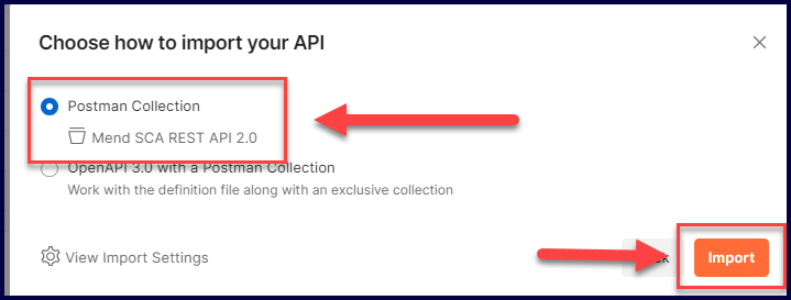 Select Postman Collection, then click on Import: