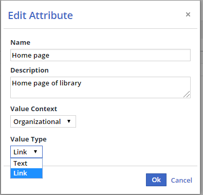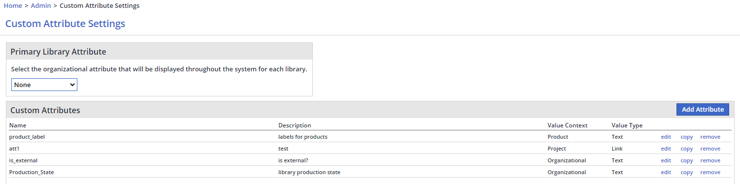 An organizational custom attribute is the primary library attribute that is displayed throughout the system for each library. There can be only one Primary Library Attribute.