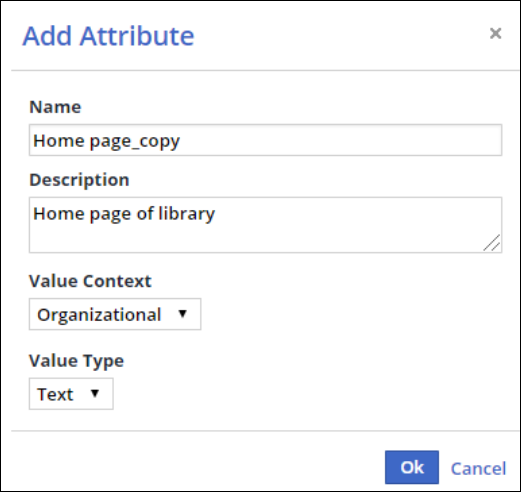 In the Custom Attributes table, click the Copy link next to the custom attribute you want to copy. The Add Attribute dialog box is displayed.