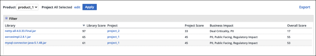 When drilling down to a specific product, the next step is to prioritize the different libraries that need to be remediated.