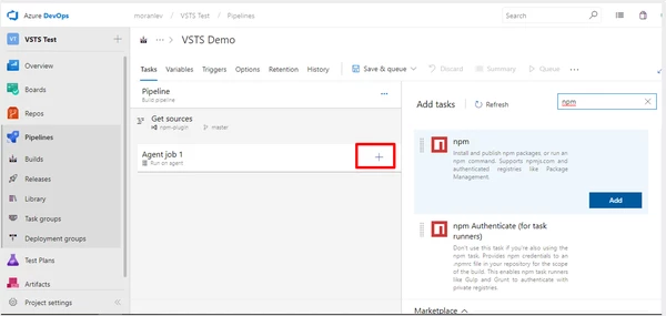 Add the relevant build task (Maven, npm, Gradle, .NET Core, etc.).