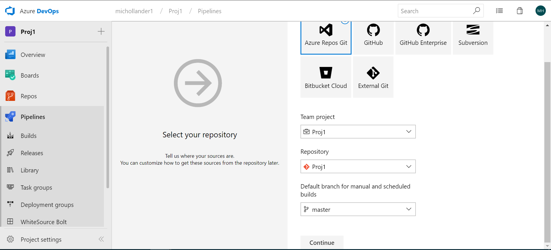 In the Select a repository screen, select your repository.