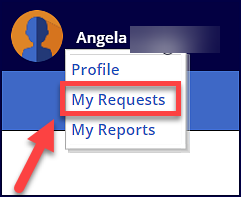 The My Requests option takes you to the User Request History page.