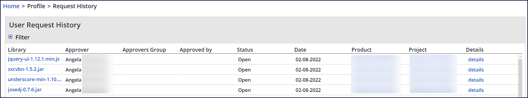 Library | Name of the open-source library. Click the library name in order to be forwarded to its Library Details page. |