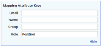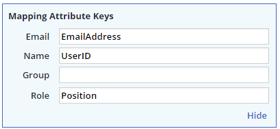To add/edit the SAML attribute keys that can be mapped, enter the following information in the Mapping Attribute Keys section: