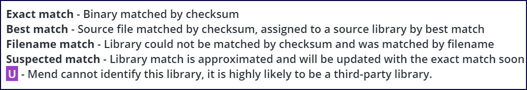 Purple āUā: The library wasn't recognized during the scan. This is most likely due to it being a third-party library.