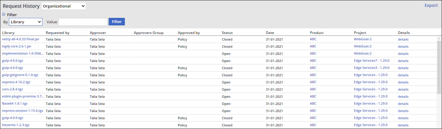 Library: Name of the open-source library. Click the library name in order to be forwarded to its Library Details page.