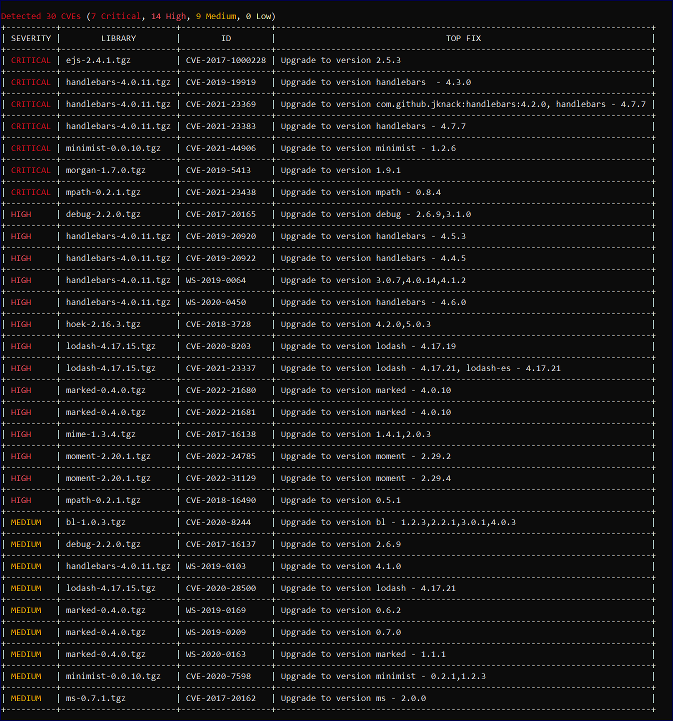 Once your Mend CLI SCA scan is completed, there are multiple resources provided to help you review, analyze, and triage your results. The following Mend CLI SCA result sections are covered in this article: