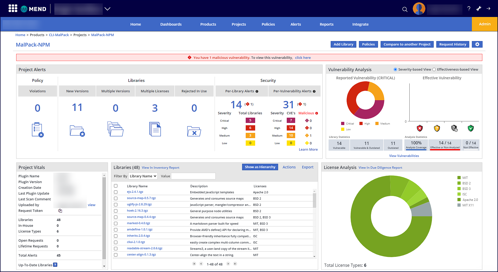 Malicious packages and their data identified by the Mend CLI are displayed in an easy-to-read table:
